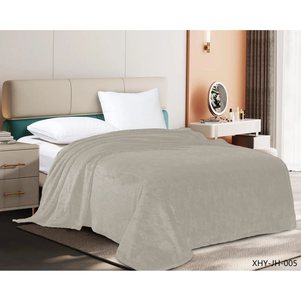 Плед велсофт 150х200см молочный тиснение 260гр 11-4801 G