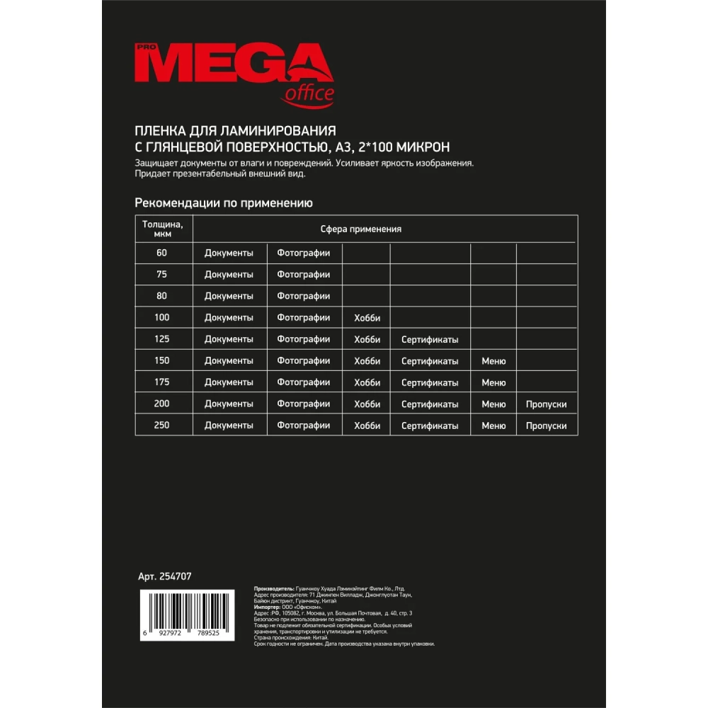 Пленка для ламинирования Promega office А3, 100мкм 100шт/уп.