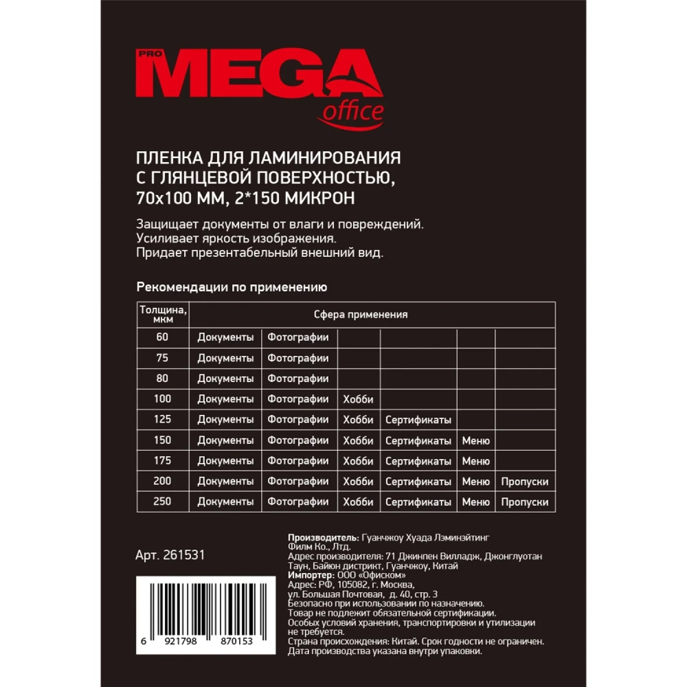 Пленка для ламинирования Promega office А7 70x100,150мкм 100шт/уп