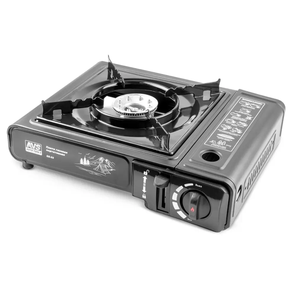 Плита газовая портативная в кейсе AVS GS-02 (встроен.переходник)