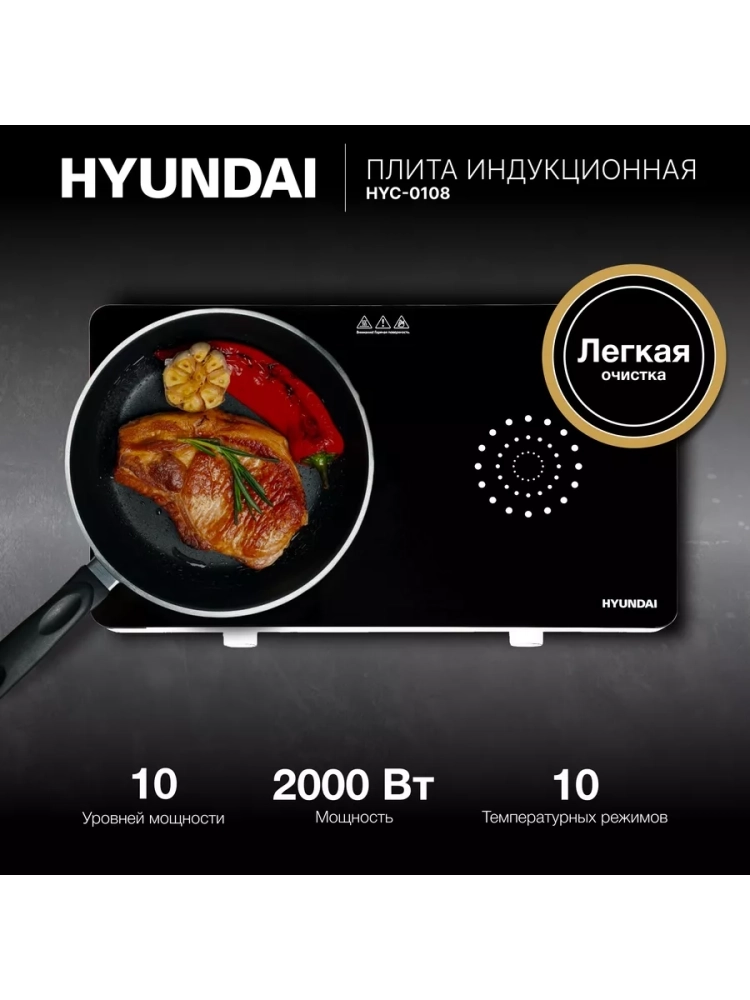 Плита Индукционная Hyundai HYC-0108 белый, поверхность стеклокерамика, индукционных конфорок: 2, сенсорное управление