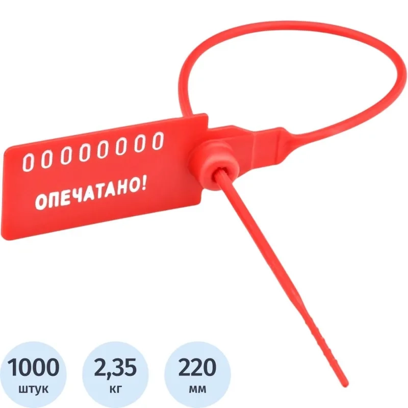 Пломба пластиковая номерная,одноразовая Универсал 220 мм,красный,1000 шт/уп