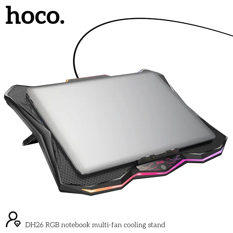 Hoco DH26 - это универсальная подставка с охлаждением для ноутбуков, планшетов и других устройств. Оснащенная мощными вентиляторами, она обеспечивает эффективный обдув, предотвращая перегрев гаджетов во время работы или игр. Этот аксессуар идеально подходит как для дома, так и для офиса, создавая комфортные условия использования техники.