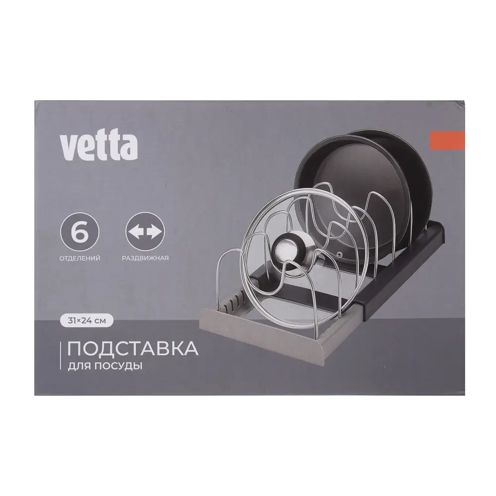Умная экономия пространства! Раздвижная подставка-сушилка от VETTA с 6 удобными отделениями. Меняет размер под ваши потребности: компактно сложена для хранения или раздвинута для сушки большой кастрюли и противня. Прочный белый пластик, размер от 31х24 см.