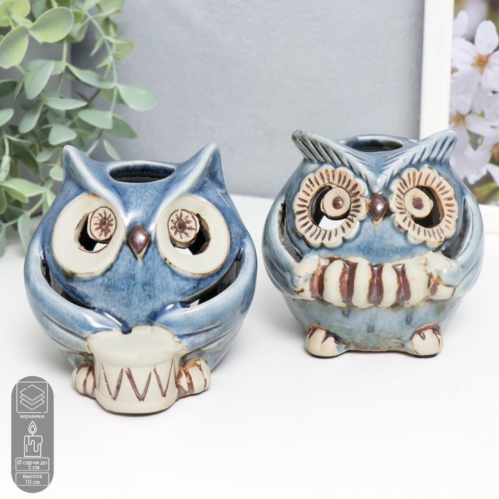 Подсвечник керамика на 1 свечу "Синий филин" МИКС 10х10х10 см