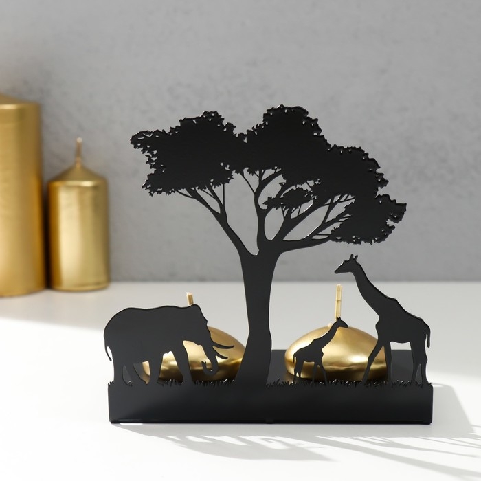 Подсвечник металл на 2 свечи "Жирафы Африки" чёрный 15,2х15х6,8 см