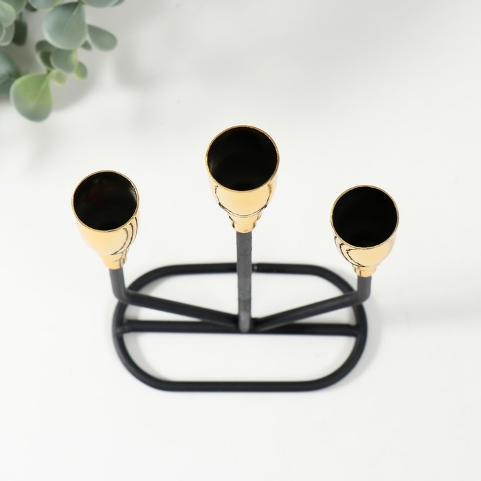 Подсвечник металл на 3 свечи "Голиаф" чёрный с золотом 12,9х5,8х19,3 см