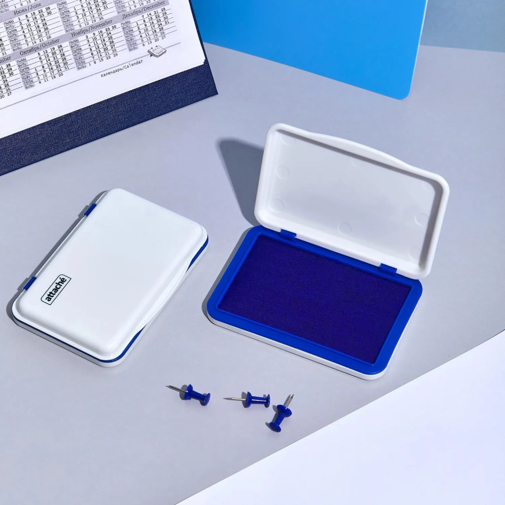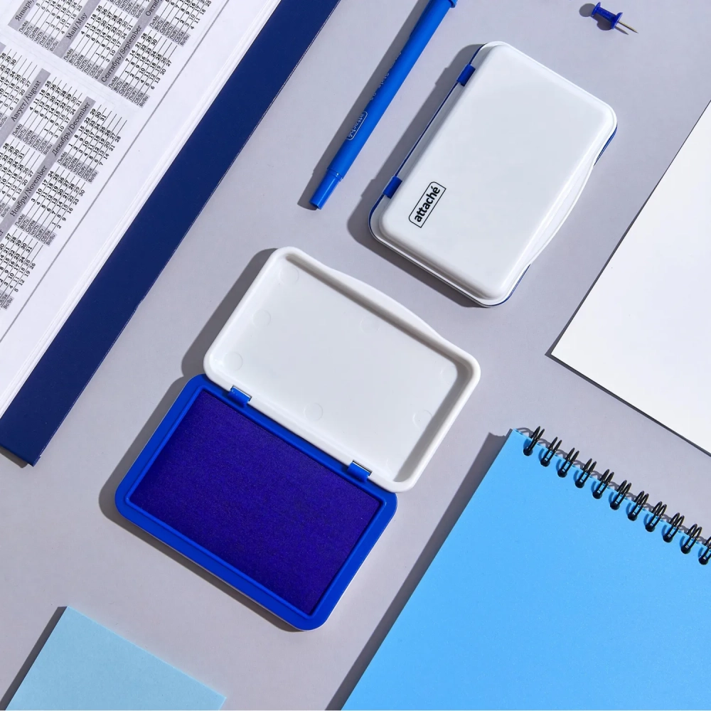 Подушка штемпельная настольная Attache синяя 70х103 мм пластик