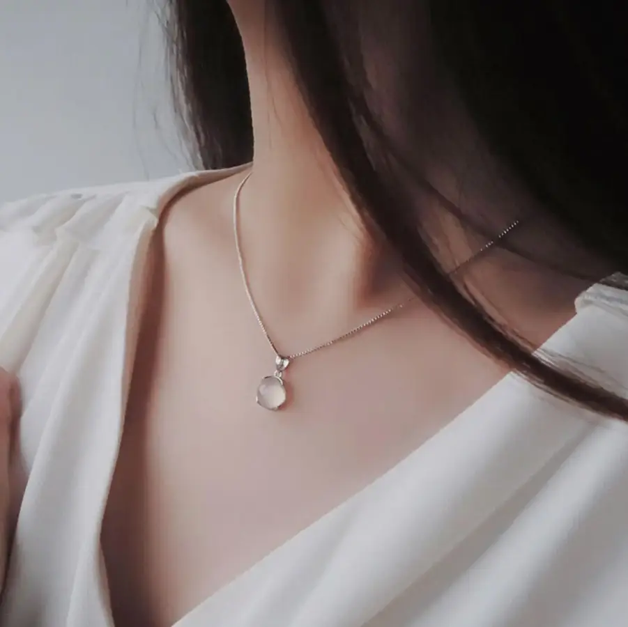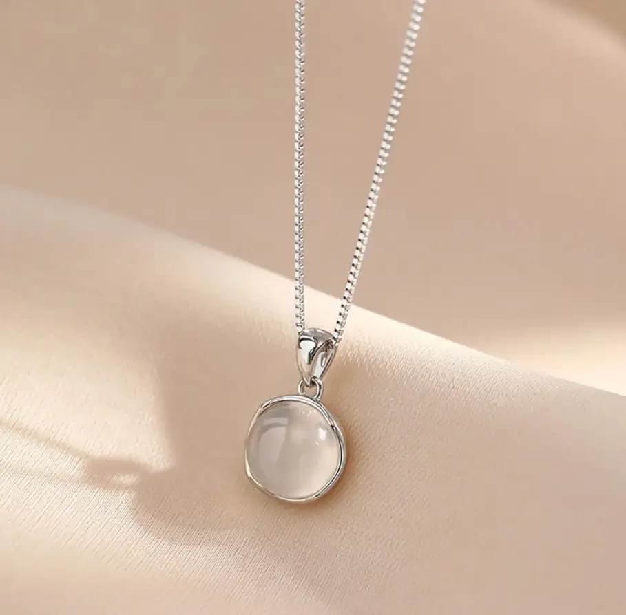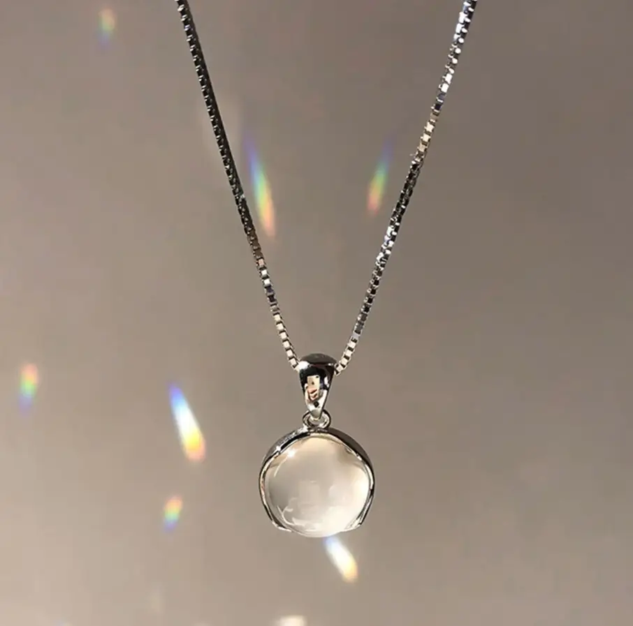 Подвеска с цепочкой плод Лунный камень серебристая