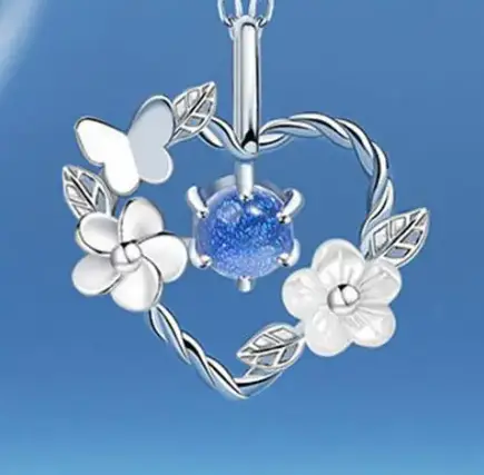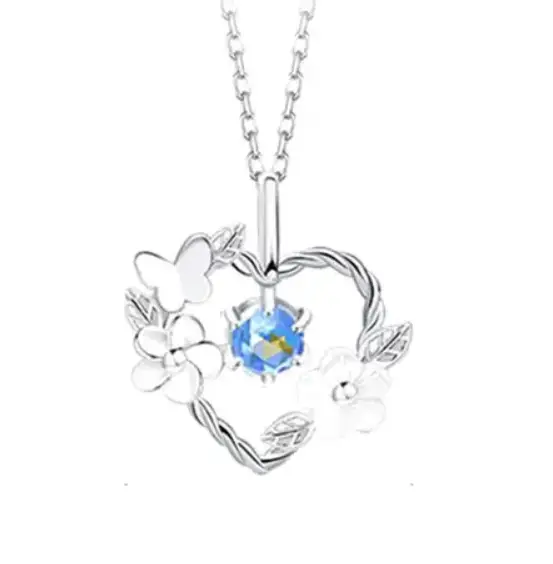 Подвеска с цепочкой Сердце с камнем серебристая