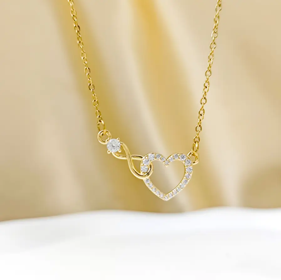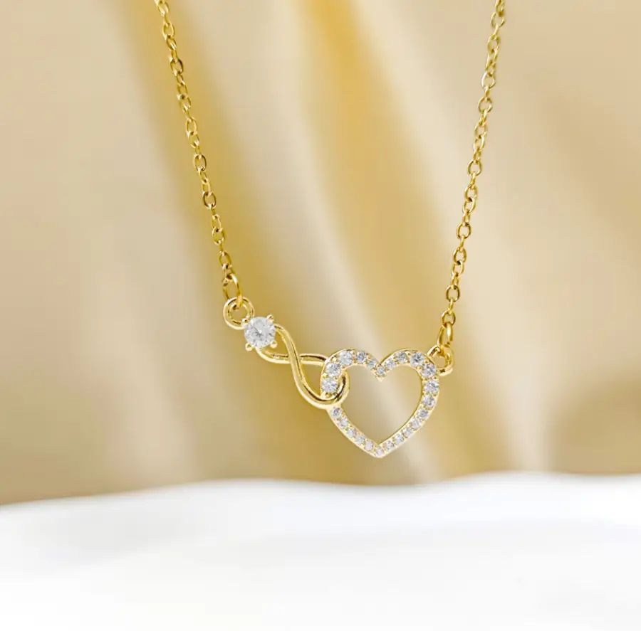 Подвеска Сердечко и бесконечность с кристаллами на цепочке
