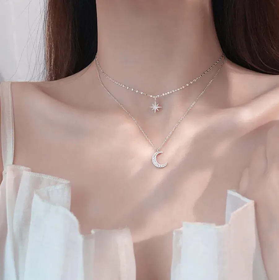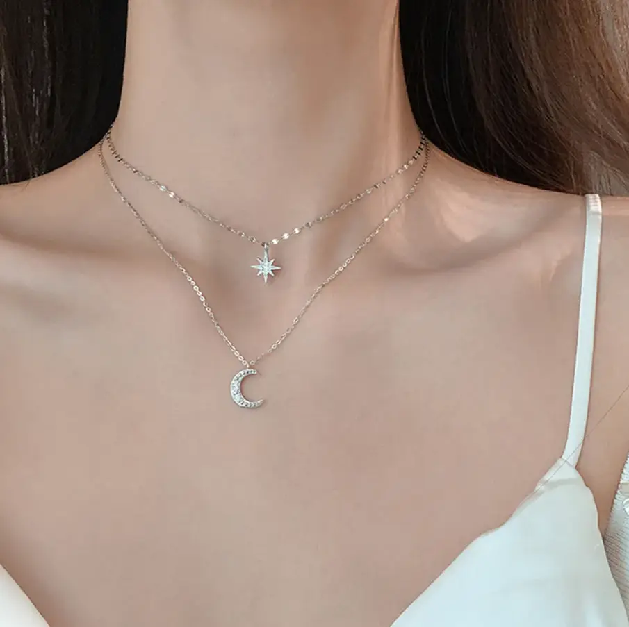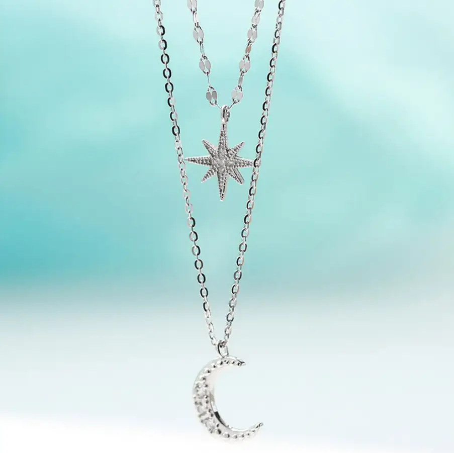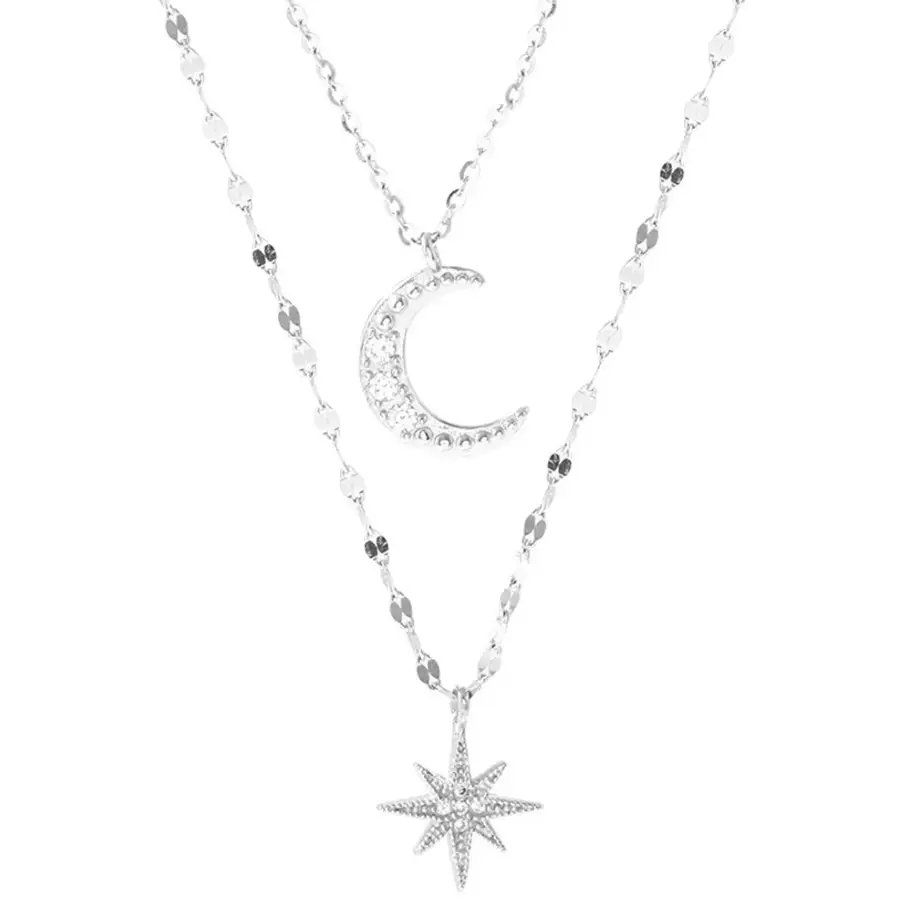 Подвески Звезда и Полумесяц на двух цепочках серебристые