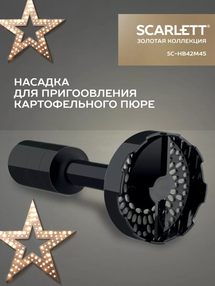 Погружной блендер Scarlett имеет мощный мотор 800 Вт, который обеспечивает быстрое и эффективное измельчение, смешивание, взбивание и даже пюрирование. Благодаря специальной насадке из термостойкого пластика Вы сможете с легкостью приготовить нежнейшее картофельное пюре без комочков. Эту насадку можно также использовать для приготовления детского питания из овощей и фруктов. Ножи и погружная часть блендера выполнены из нержавеющей стали марки Steel Pro, не деформируются и легко моются в посудомоечной машине. Удобная ручка и небольшой вес позволят пользоваться блендером каждый день. Для комфортной работы предусмотрено 2 скоростных режима, а для твёрдых сортов сыров и орехов в модели есть специальная кнопка с TURBO режимом.
