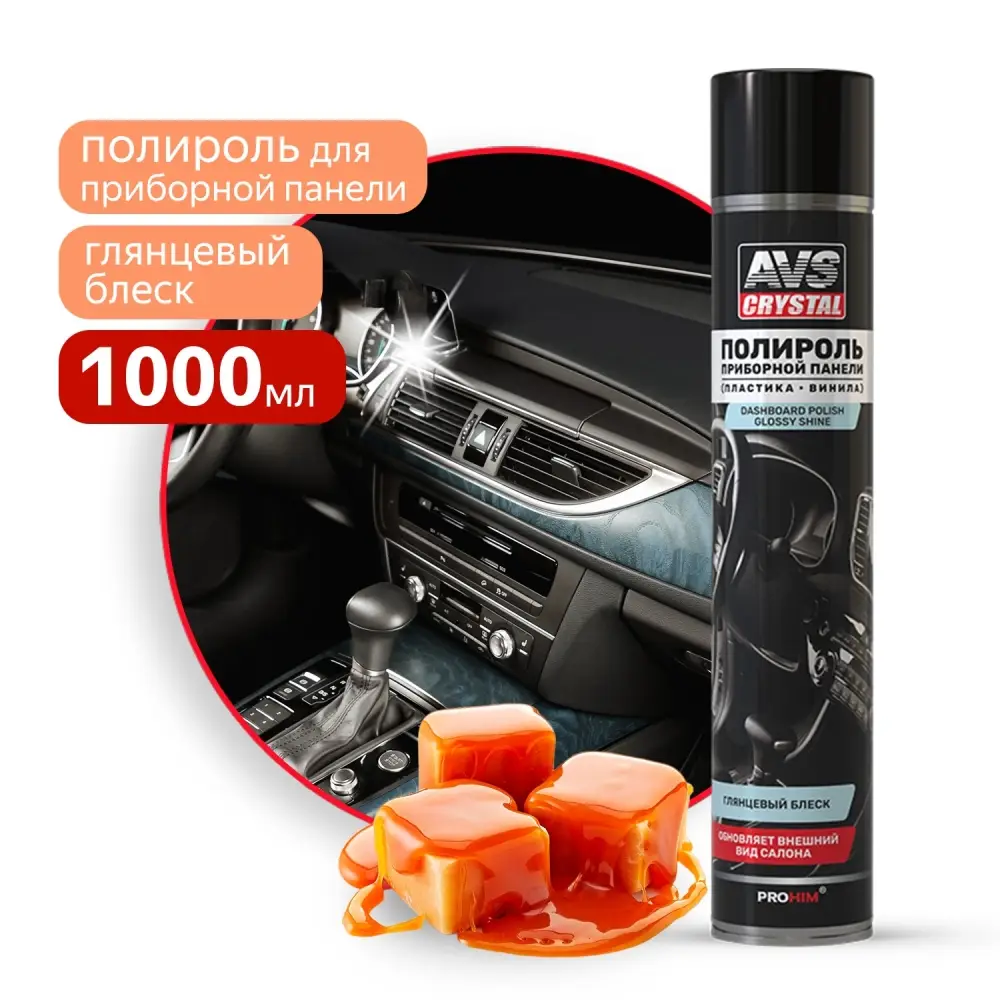 Полироль для приборной панели глянцевый "Карамель" (аэрозоль) 1000 мл AVS AVK-806
