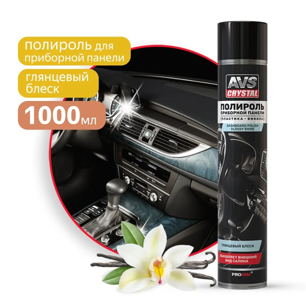 Полироль для приборной панели глянцевый "Ваниль" (аэрозоль) 1000 мл AVS AVK-812