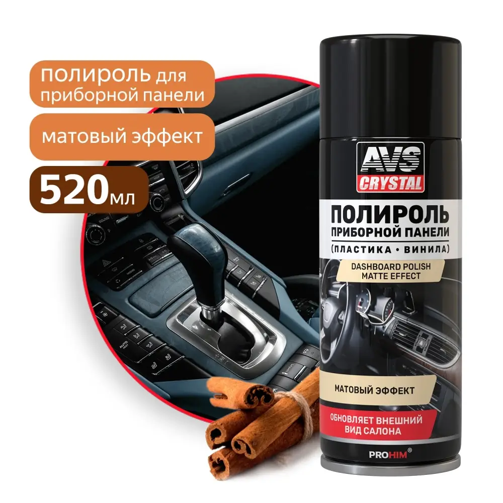 Полироль для приборной панели матовый "Корица" (аэрозоль) 520 мл AVS AVK-845