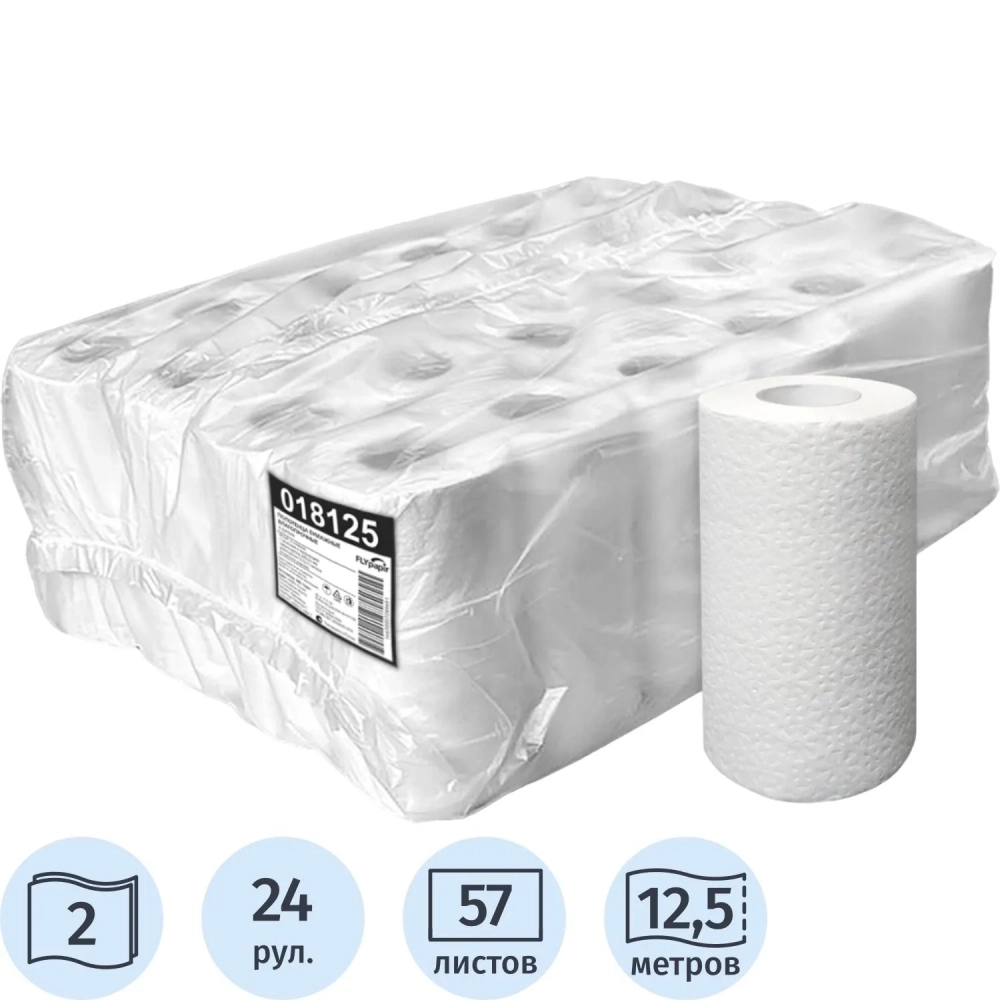 Полотенца бумажные 2сл белые вторичная целлюлоза 12,5м 24рул/уп Спб