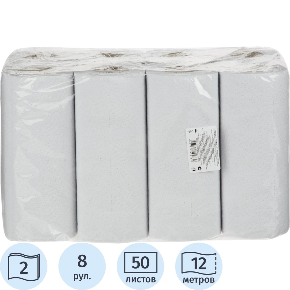 Полотенца бумажные белые втор 2 сл, 12 м, 8 шт/уп_Л