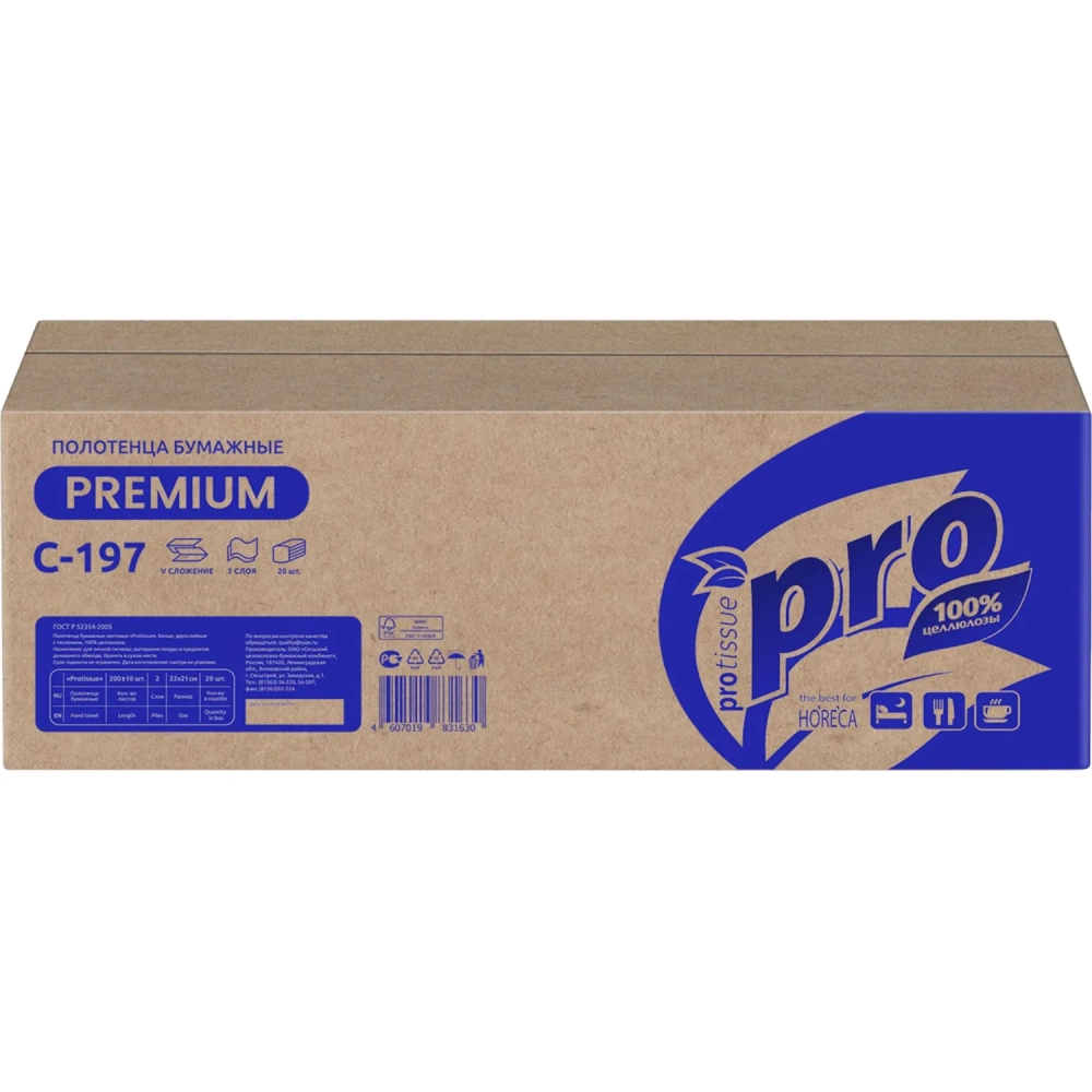 Полотенца бумажные д/держ Protissue V-слож 2сл 200л/пач 20пач/кор_C197