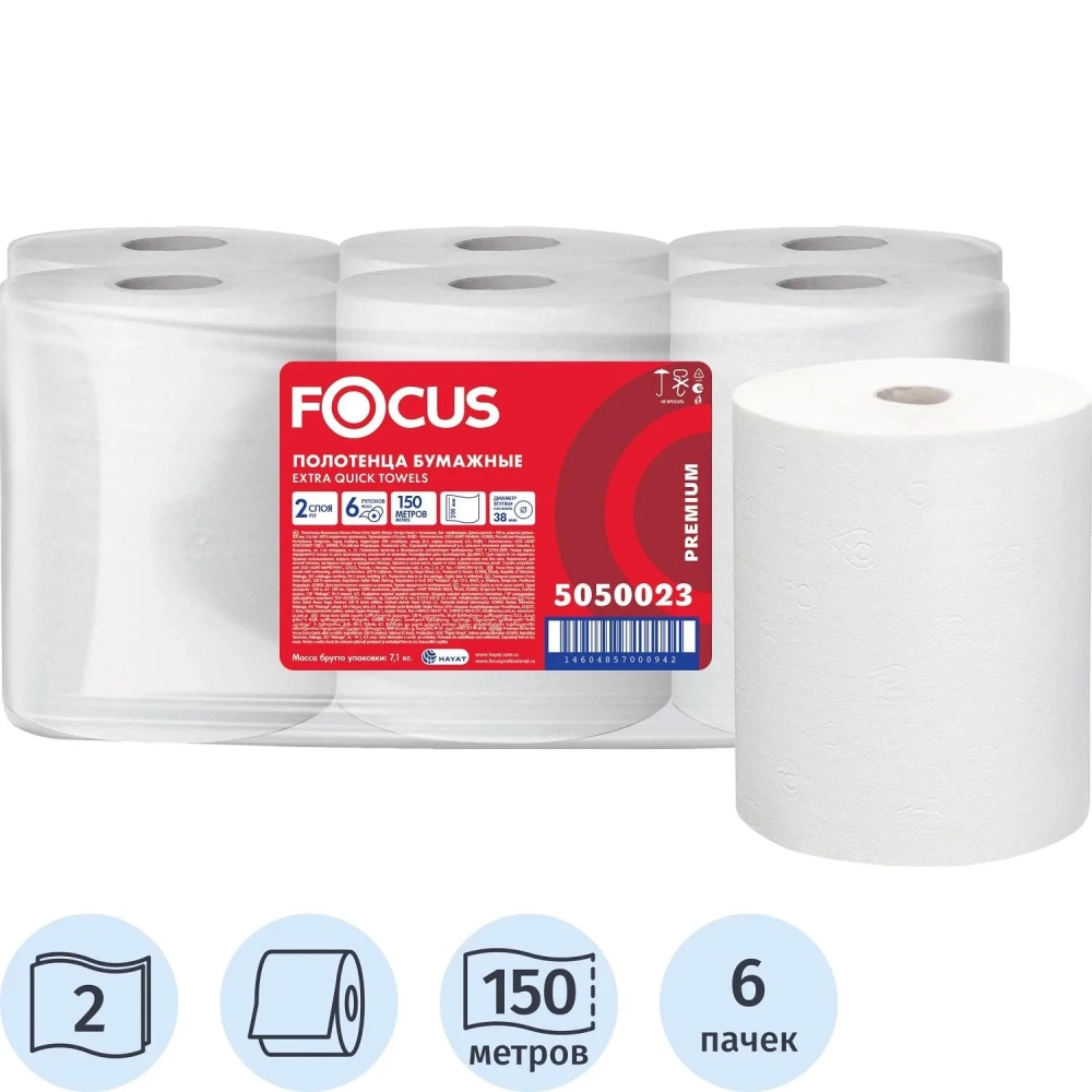Полотенца бумажные д/дисп. FOCUS Extra Quick 2сл 150м 6рул/уп цел 5050023