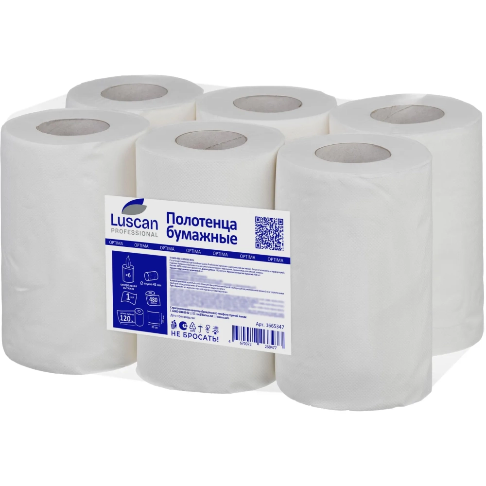 Полотенца бумажные д/дисп Luscan Prof Optima ЦВ 1 слбелцел 120м 6рул/уп