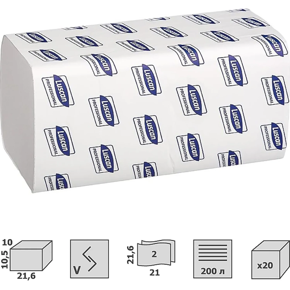 Полотенца бумажные д/дисп. Luscan Professional Vслож2 слбелвтор200л20пач/уп