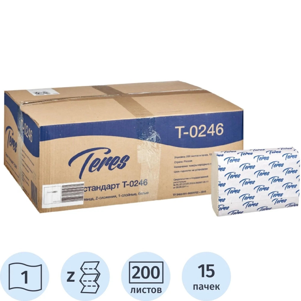 Полотенца бумажные д/дисп Терес 1сл бел 200л/пач 15пач/кор Z-слож.Т-0246