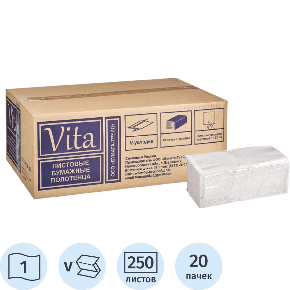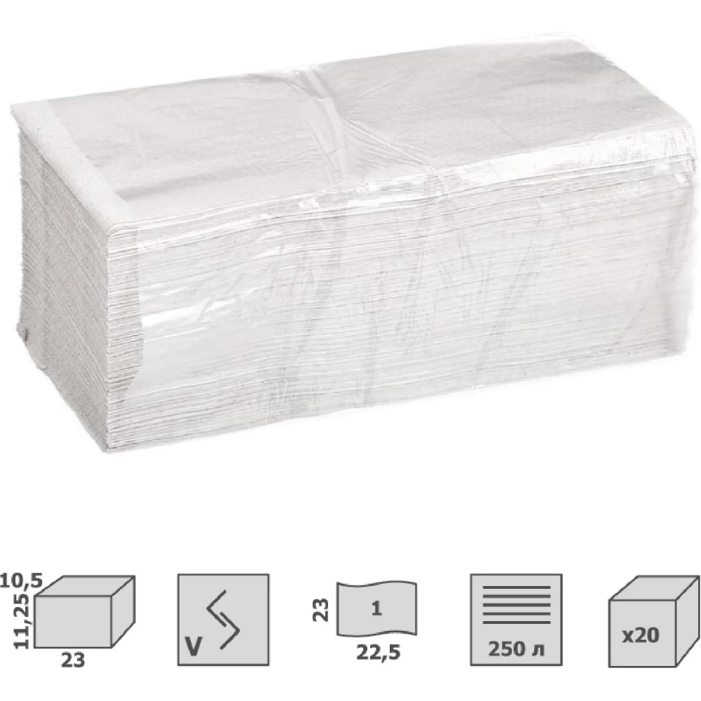 Полотенца бумажные д/дисп V-слож 1сл бел вторич 250л 20пач/уп