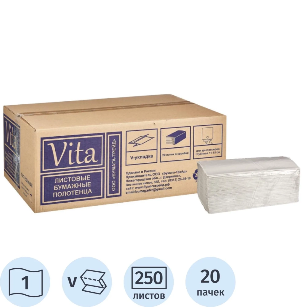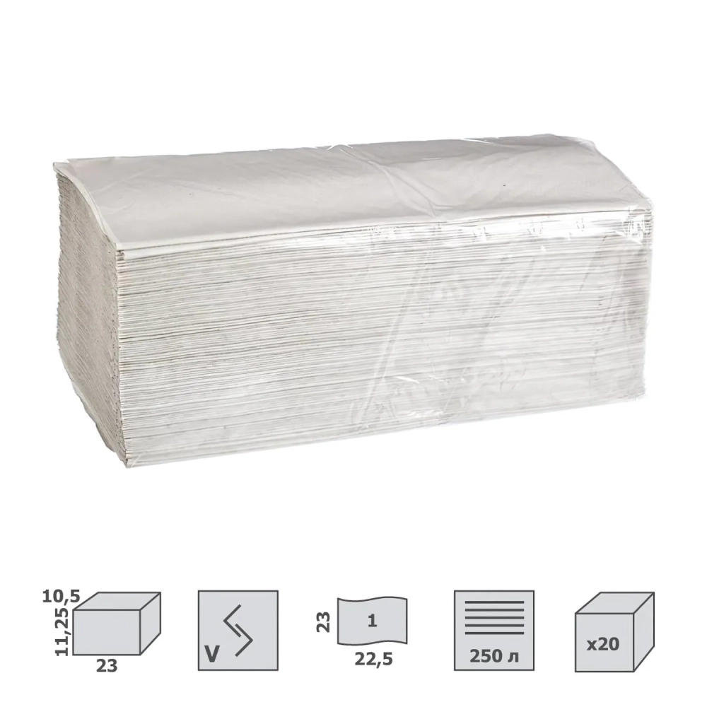 Полотенца бумажные д/дисп V-слож 1сл сер вторич 250л 20пач/уп