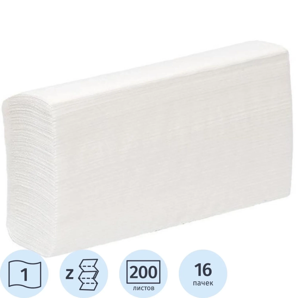 Полотенца бумажные листовые Z, 1 -сл 200 листов 23х23 ПБ Z-1-200, 16шт/уп_Л