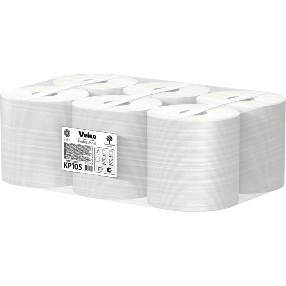 Полотенца бумажные в рул c ЦВ Veiro Professional Basic 1сл300м 6шт/уп KP105