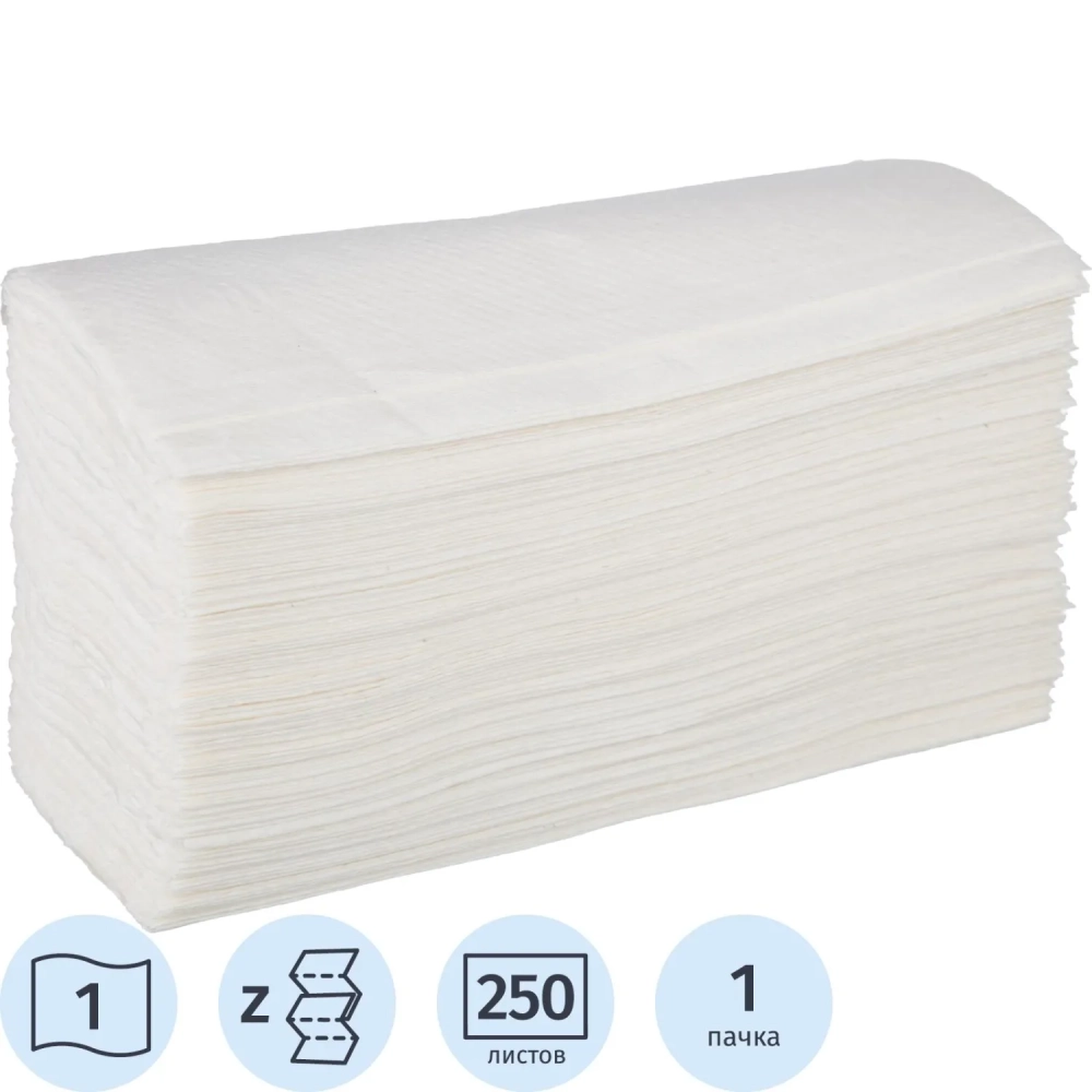 Полотенца бумажные Z 1сл 250л 23х21,6см 100% целлюлоза белые_Л