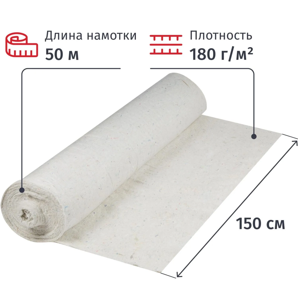 Полотно техническое холстопр. ХПП светлое, рул 1,5х50м пл. 180 г/м2