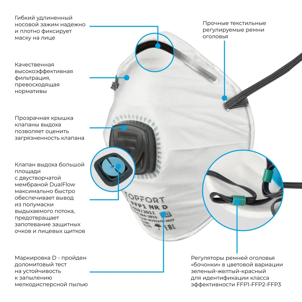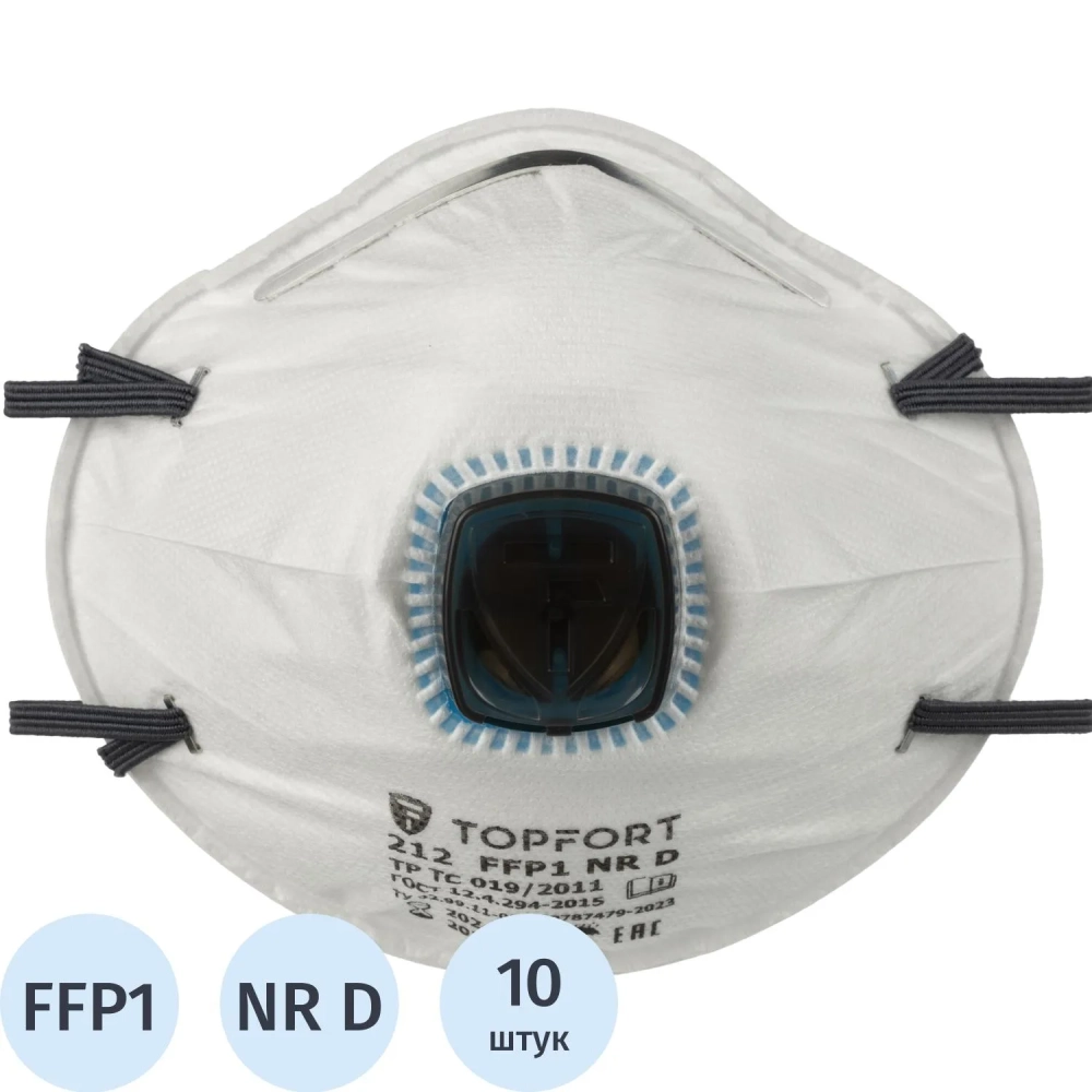 Полумаска фильтрующая TOPFORT 212 с кл FFP1 до 4ПДК 10шт/уп