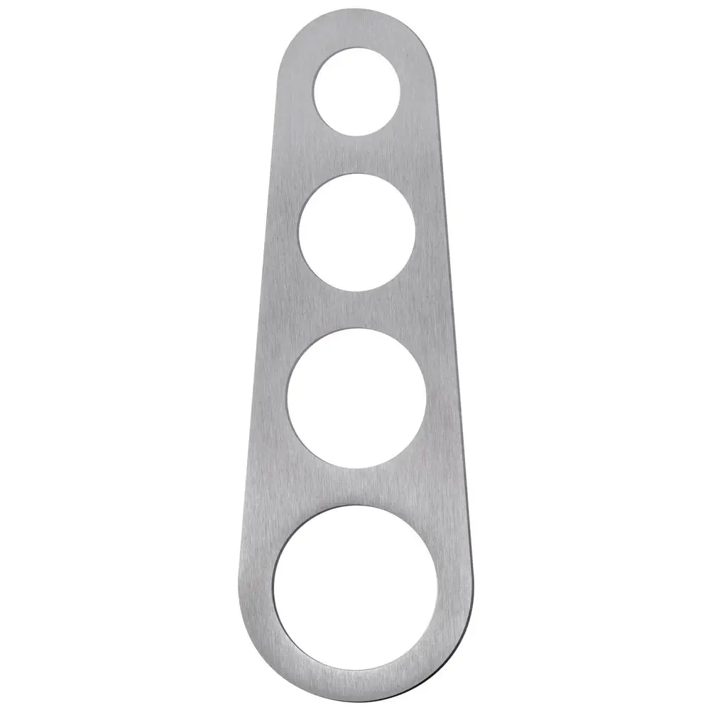 Порционный дозатор позволит точно рассчитать количество спагетти на одну, две, три или четыре порции. Незаменимое приспособление для любителей пасты, удона, лапши. Благодаря компактному размеру, он не займёт много места на кухне, среди другой кухонной утвари. Дозатор можно хранить как в кухонном ящике, так и вертикальном положении, повесив его на настенный крючок. Перед первым применением и после каждого использования рекомендуется вымыть губкой или мягкой щёткой, можно с жидким моющим средством, сполоснуть проточной водой и просушить. Можно мыть в посудомоечной машине. Изготовлено из коррозионностойкой (нержавеющей) стали. Размер 18,5х6 см.