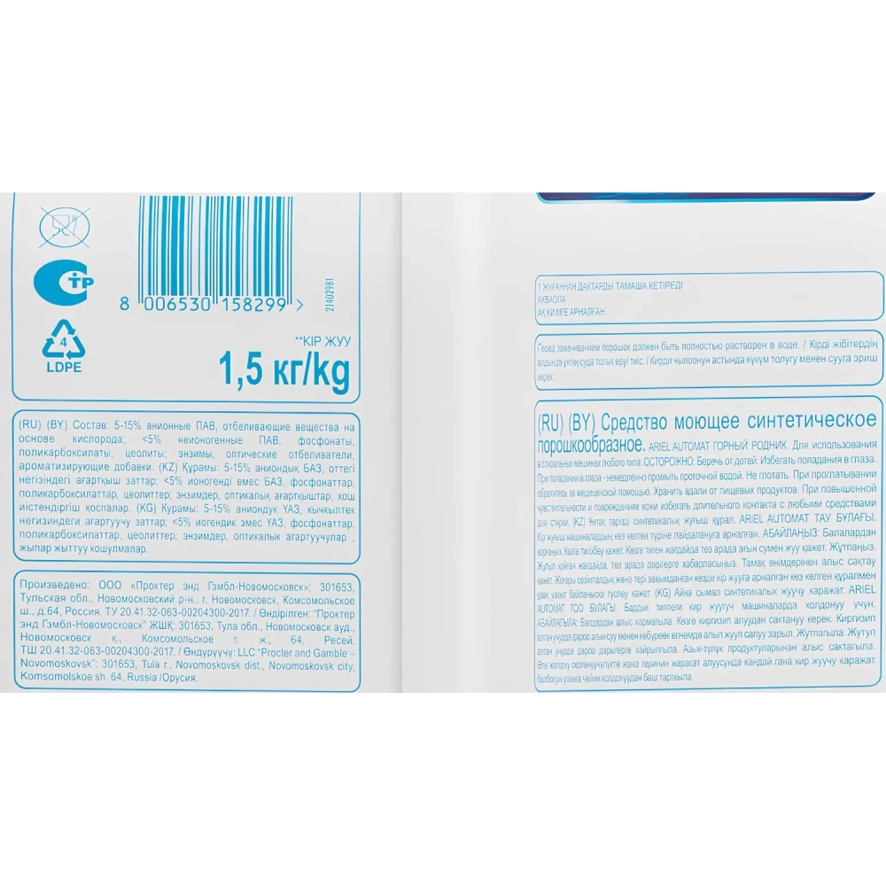 Порошок стиральный Ariel Горный родник Автомат 10 стирок 1.5кг