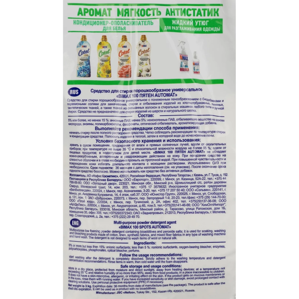 Порошок стиральный BiMax 100 пятен автомат 3 кг