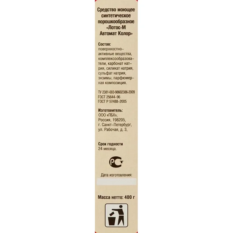 Порошок стиральный ЛОТОС-М автомат 400 гр_СПБ