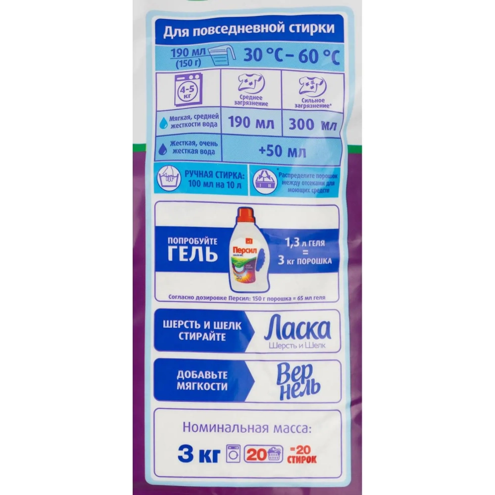 Порошок стиральный Персил Колор Свежесть от Вернель для цвет/бел 3кг (20СТ)