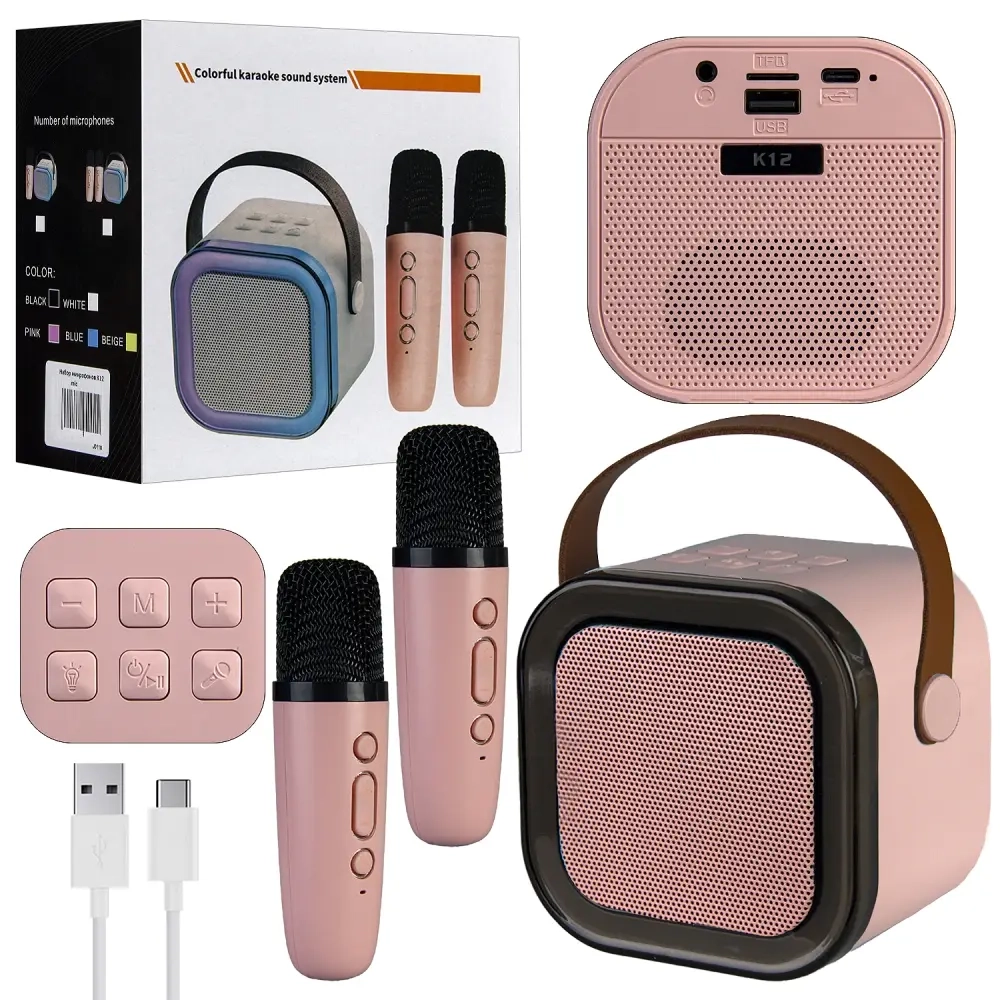 *Портативная акустика с 2 микрофонами K12 Розовая