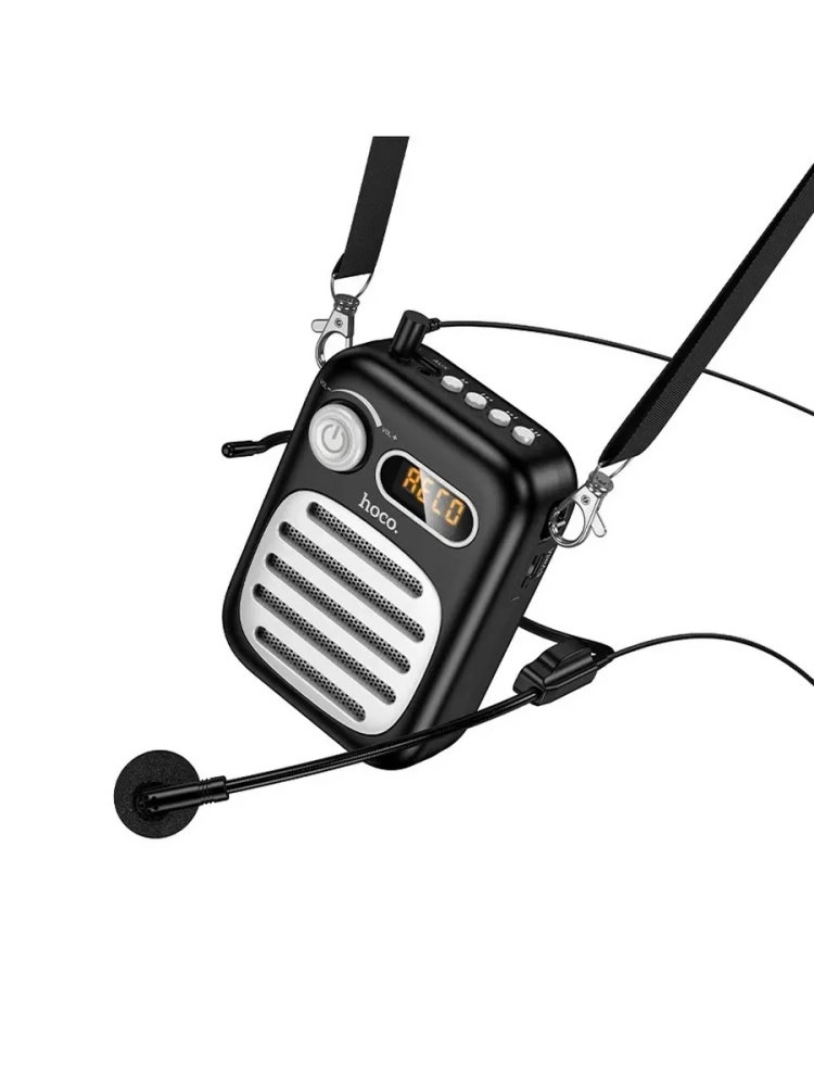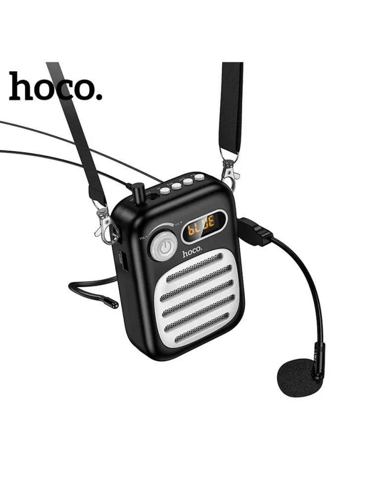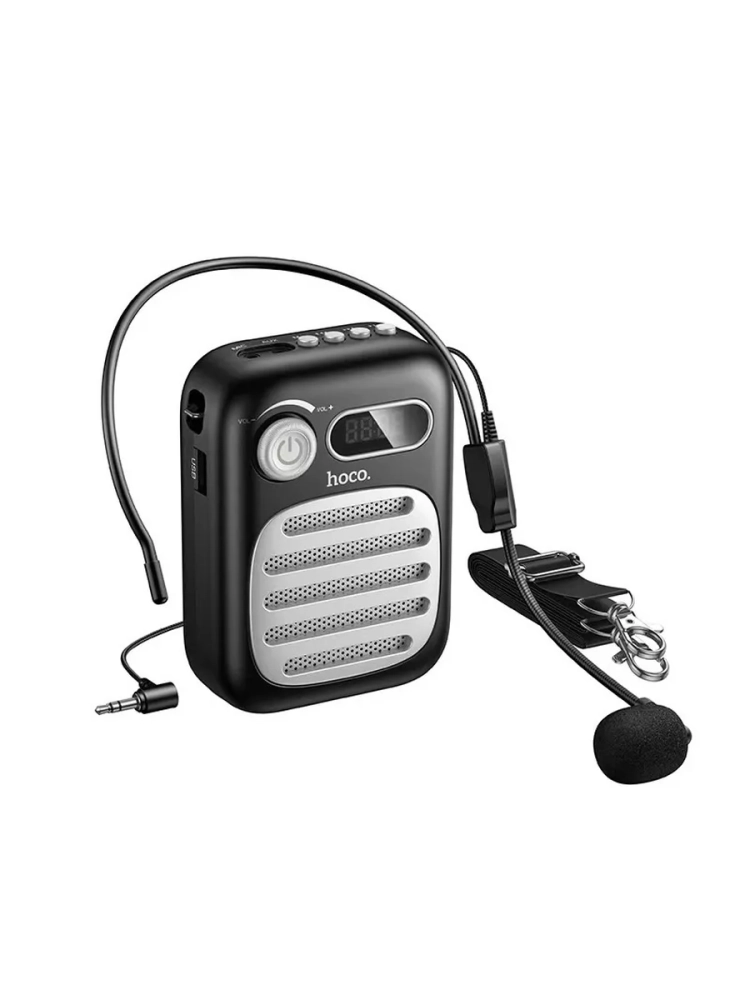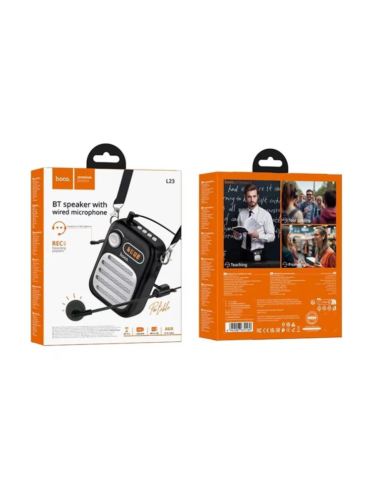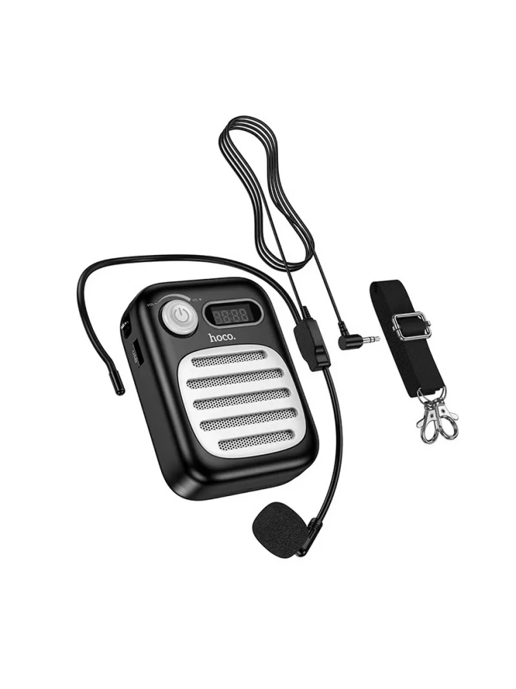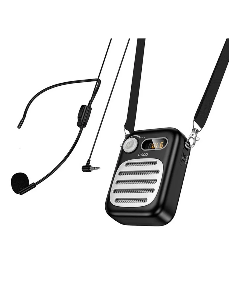 HOCO L23 — компактный усилитель голоса с проводным микрофоном для занятий, экскурсий, презентаций и мероприятий. Обеспечивает громкое и чёткое звучание без перегрузки голоса.