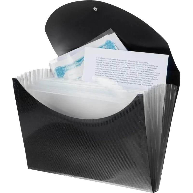 Портфель-картотека Комус на резинке 12 отд. А4, черный