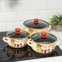 Набор эмалированных кастрюль «Старый город», 3 предмета: 1,5 л, 2 л, 3 л, индукция