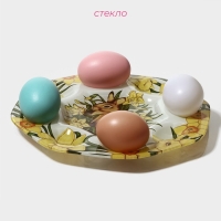Стеклянная подставка на 6 яиц «Пасхальный венок» на пасху, 18 х 18 см