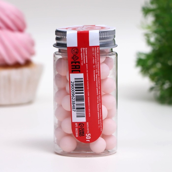 Посыпка кондитерская «Шарики», 10 мм, розовый матовый, 50 г