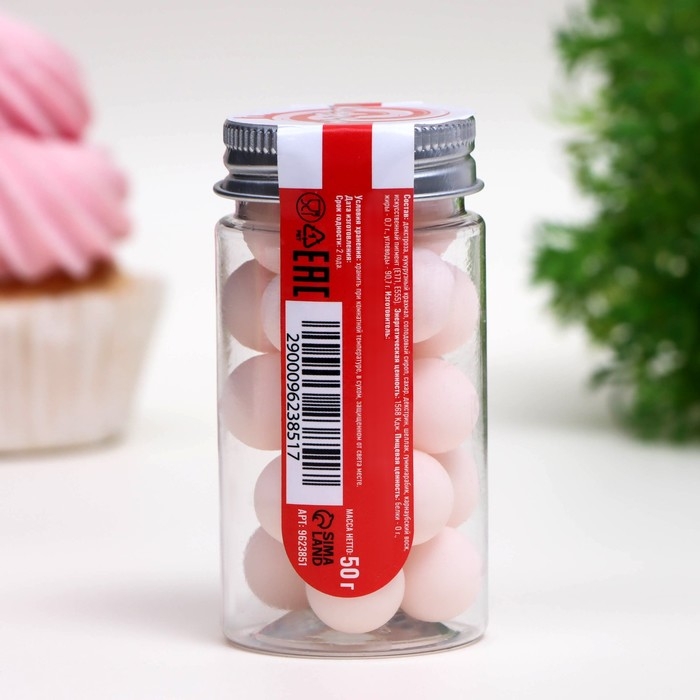 Посыпка кондитерская «Шарики», 14 мм, розовый матовый, 50 г