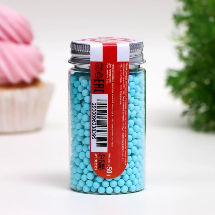 Посыпка кондитерская «Шарики», 4 мм, синий матовый, 50 г