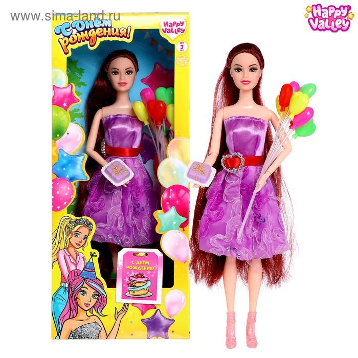 Поздравительный набор станет любимым подарком вашей модницы! В комплекте есть куколка и открытка. Волосы на затылке не прошиты, в локтях кукла шарнирная, в коленях — нет. Размер: 7,5 × 3 × 29 см. У куклы длинные волосы, на которых можно тренироваться в создании причёсок.