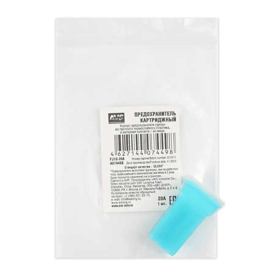 Предохранитель картриджный AVS FJ10-20A в пакете