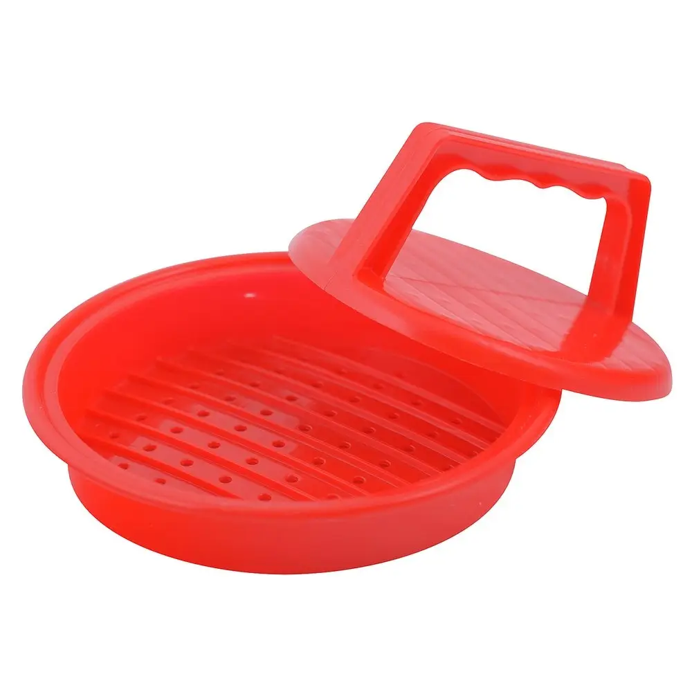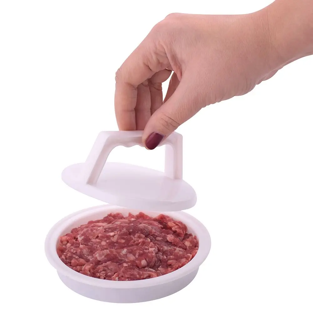 С помощью пресса вы сможете сделать котлеты из любого фарша: говядина, рыба, курица. Небольшое количество фарша поместите в нижнюю часть пресса, равномерно распределите и плотно придавите крышкой. Уберите крышку и переложите полученную котлету на раскаленную сковороду или прокладывайте получаемые котлеты бумагой для выпекания, если хотите приготовить их позже. После использования промойте пресс под проточной водой, можно с использованием жидких моющих средств. Изготовлено из пластмассы (полипропилен).
